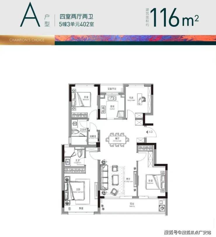 其他约116方、约129方和约152方的四房户型,实际使用率都在92%以上,全部都自带一个独立储藏间。