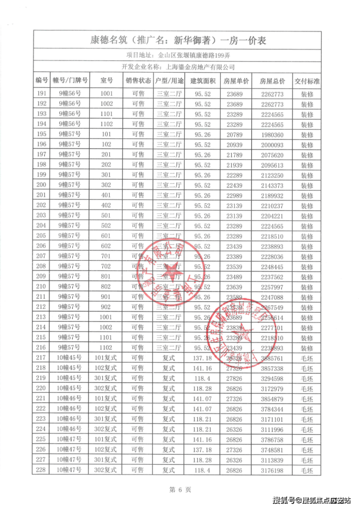 【一房一价表】