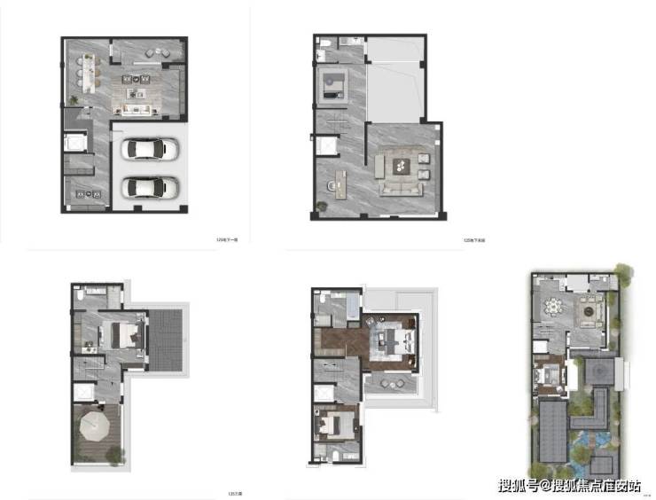 约125㎡的明星户型做到了5套房设计,地下一层、地上三层的空间形态,将空间尺度无限放大。