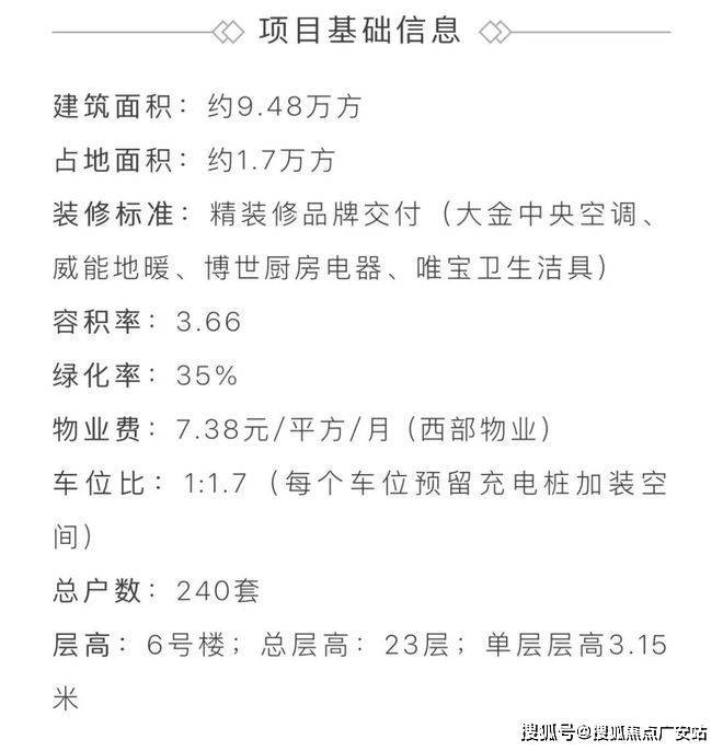 项目用地面积17201.45平方米;总建筑面积94367.44平方米;未来将建设成住宅、办公综合体;包括3幢高端精品住宅和1幢精品办公楼。住宅产品面积约119-241㎡3-5房,共240套房源。