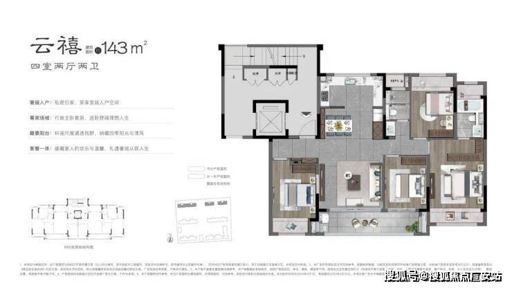 主力户型:有 124㎡三室两厅两卫、143㎡四室两厅两卫、159㎡四室两厅三卫三种户型。124㎡户型三开间朝南,南向面宽达 10.5 米;143㎡户型采用四开间朝南、横厅设计,LDK 一体化通透空间约 35㎡;159㎡户型四开间朝南,南向面宽达 14.2 米,主卧套房面积约 32㎡。