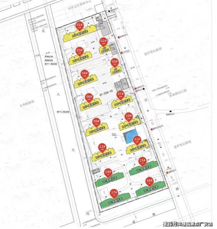 根据项目规划设计方案,项目拟建11幢14-16F高层住宅、4幢7F多层住宅以及若干社区配套用房,共计规划约752套可售住宅;小区人车分流,规划有下沉式庭院、地下会所,2#、7#、10#、11#、12# 设置有架空层,打造泛会所空间。