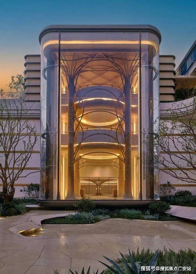 【“生机之亭”观景环厅】:三层观景环厅,高约14米,全落地玻璃,用足8吨不锈钢,打造顶天立地的“生机之树”。