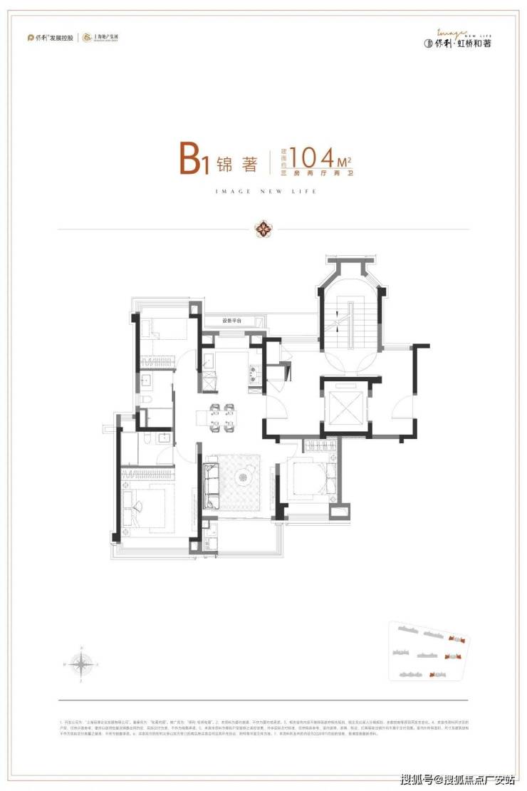 但保利虹桥和著的建面约104㎡3房2卫,却很好的解决了以上所有问题: