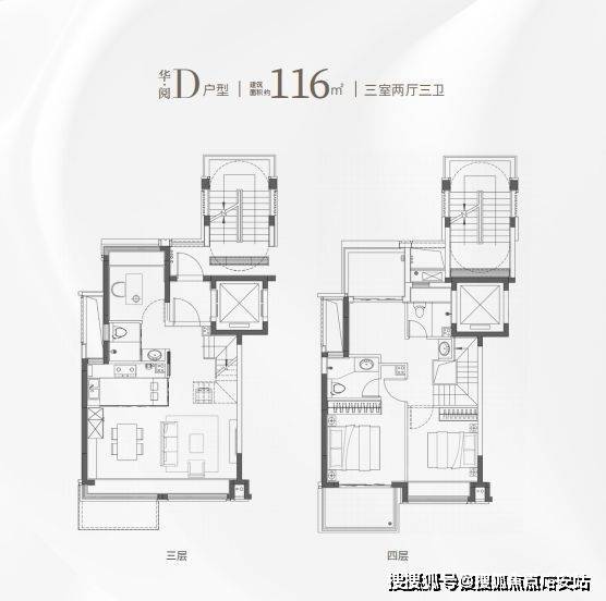 同样是3房2卫的配置,功能性与舒适度兼具。
