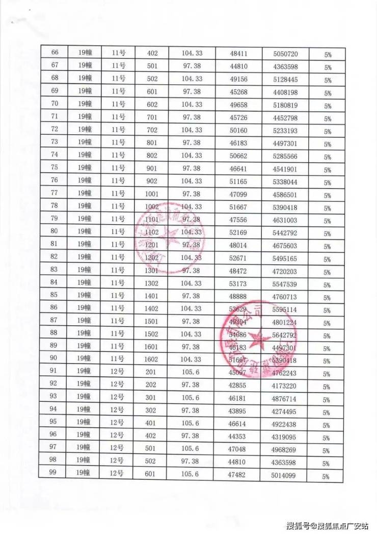 一房一价表: