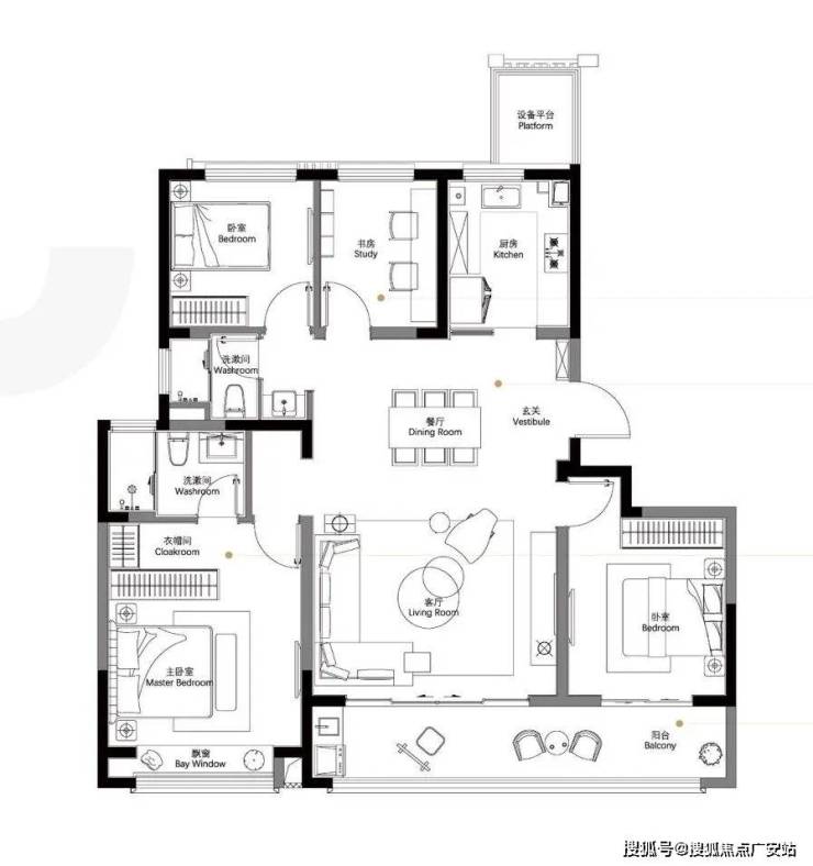 主卧化身酒店式尊崇套房,独立全明卫浴辉映品质;