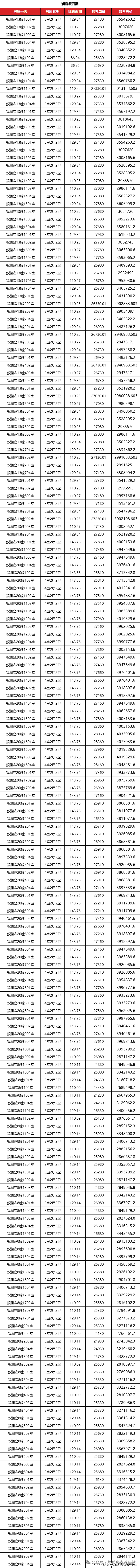一房一价表如下