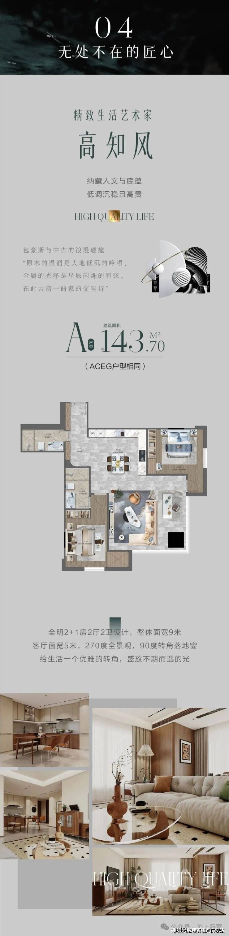 在售户型面积:建面约131-143㎡大平层,层高3.3米,270°落地窗