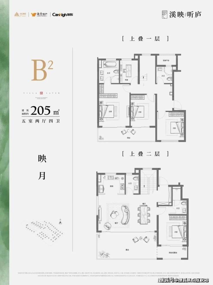 :主力户型为建面约200-260平方米的叠墅,包含5室2厅设计,南北通透,动静分离。