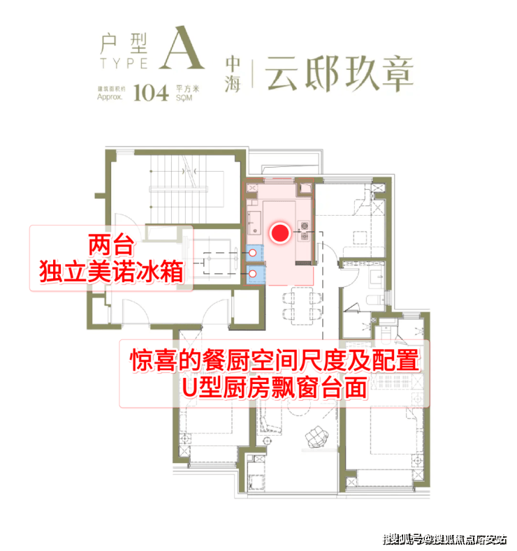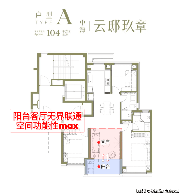 建面约104户型亮点分析: