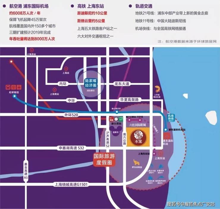 《浦东新区产业发展“十三五”规划》在浦东产业空间布局上,推动金融、贸易、文旅、科技、通讯等全产业发展,并打造金融城、科学城、旅游城、航空城“四城”建设, 触发全新经济风暴,其中国际旅游度假区作为“旅游城” 整体规划范围24.7平方公里,分为三个开发阶段着力构建“一核五片”的空间格局,核心区迪斯尼乐园一期已建成运营,二期三期占地约3.1平方公里,预计2020年二期落成使用。