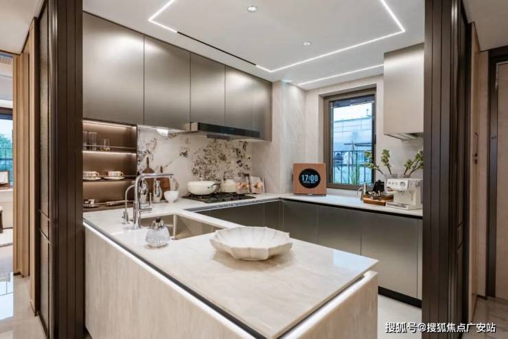 厨房与客餐厅视觉连通,让你在烹饪时,一转身便能与客厅的家人交谈,增进家庭成员的情感互动。