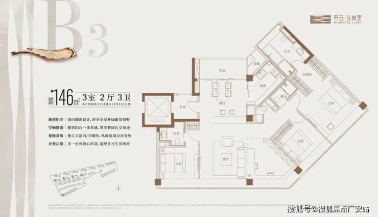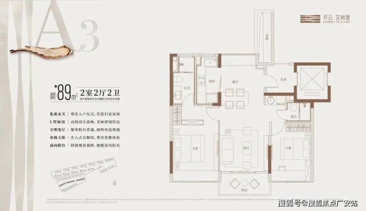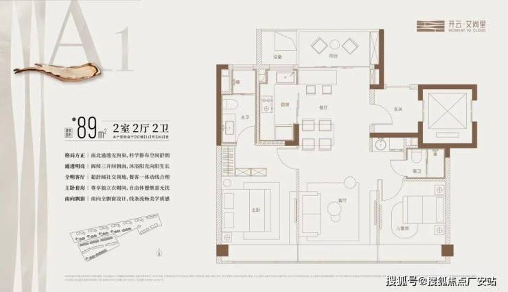 主力户型:主力推出建面约87-89㎡的三房两厅一卫户型,还有143㎡、187㎡等户型。以89㎡三房户型为例,采用全明通透设计,客厅与南向阳台相连,采光面约3.8米,主卧面积约15㎡,配备大尺寸飘窗。