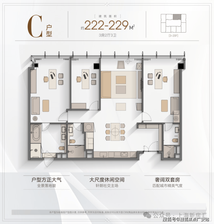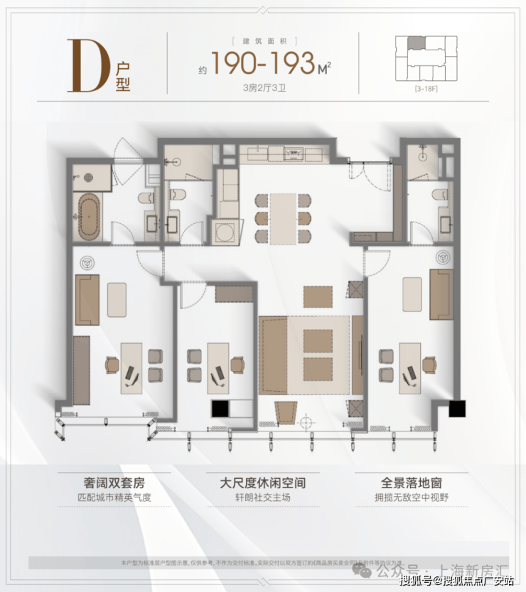 户型:主推建面约157-242㎡的精装大平层,三至四房设计。