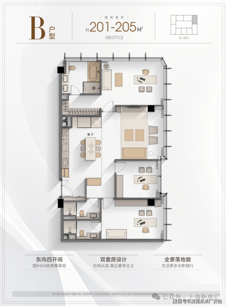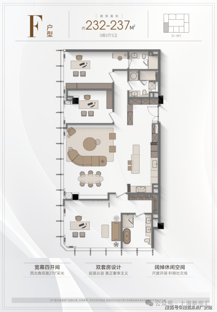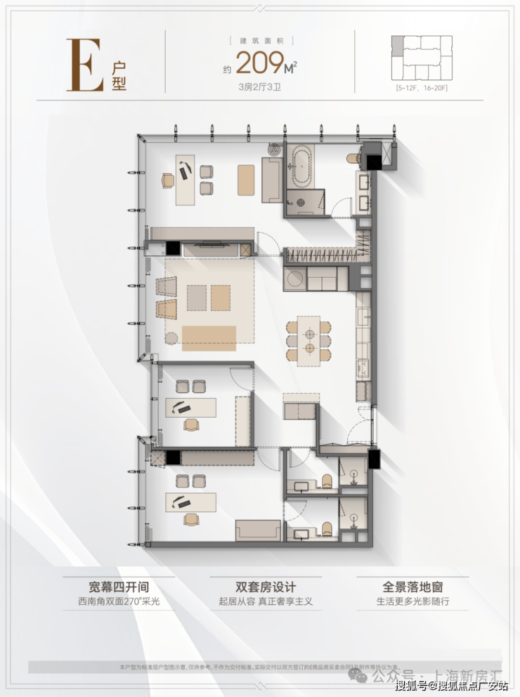 5️⃣户型优势:4.2米层高,全落地窗设计,多套房设计满足三代同堂