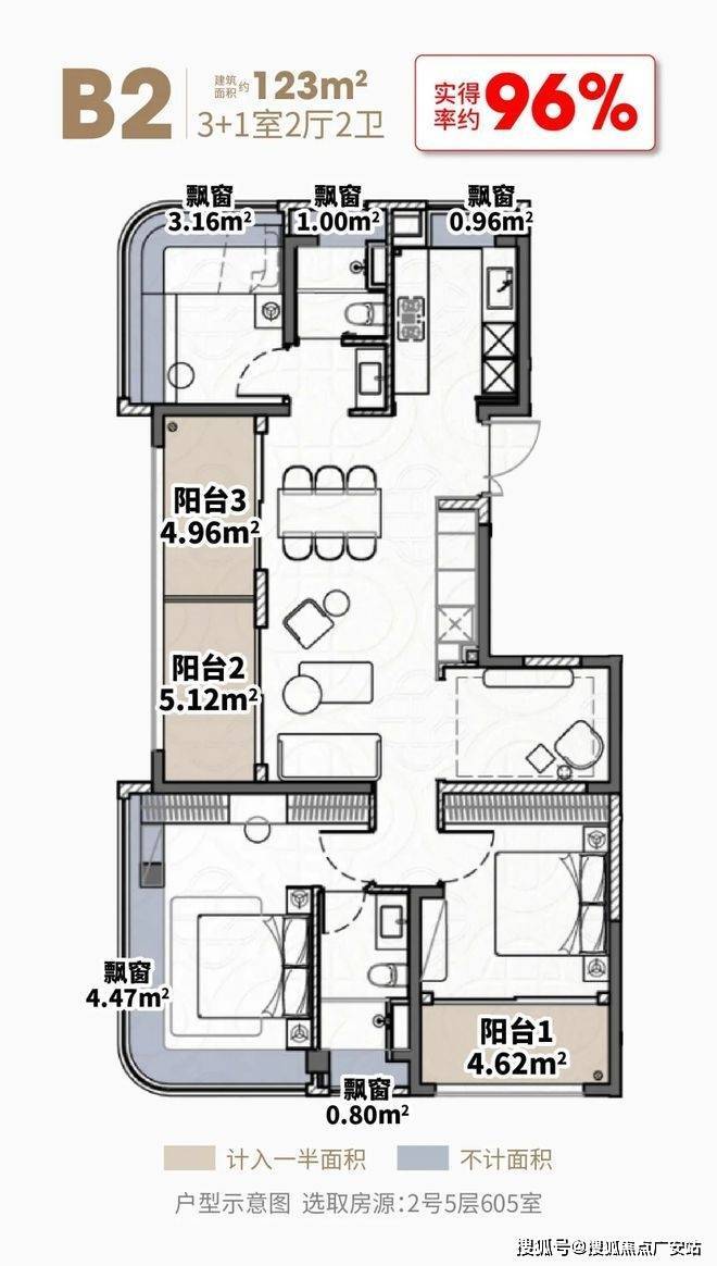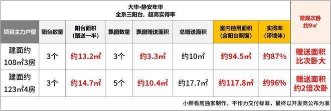 户型:建面约108/123㎡的3-4房,三阳台设计,得房率高。
