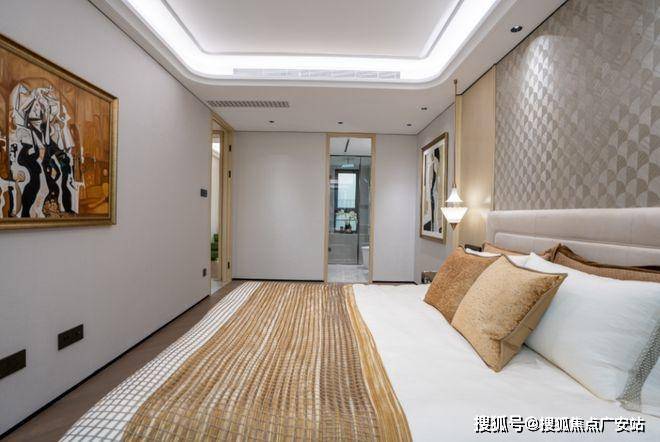 另外,像卧室地板,没有采用常规横拼、竖拼,而是采用复杂的斜拼,只为更美观;吊顶设计同样暗藏匠心,采用多层次曲边造型,为空间增添优雅的线条感。