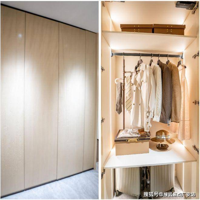 更令人惊艳的,莫过于项目将原本易被忽略的过道转化为实用收纳区——打造了少有的“过道柜”,无论日常衣物、换季的厚被子,还是不常用的生活物件,都能在此找到规整安放的位置。