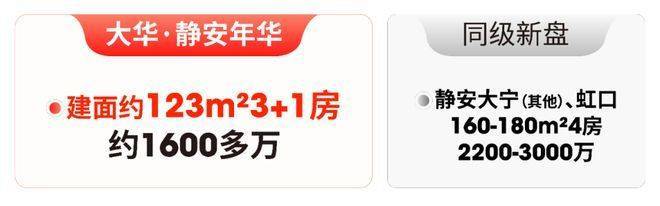 4房同样如此,市面同类产品普遍建面160-180㎡,总价2200万起步;大华·静安年华123㎡“3+1”房,总价1600多万,既满足大家庭“一步到位”的需求,又降低了改善成本。
