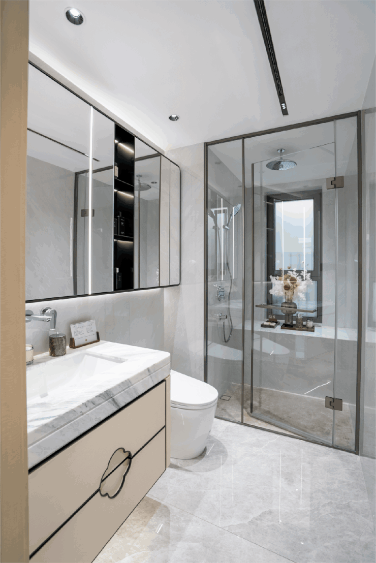 卫生间台面则选用石材,进一步提升空间精致度。