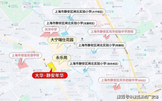 项目步行约900米范围内,风华中学、闸北实验小学两所口碑名校环伺。