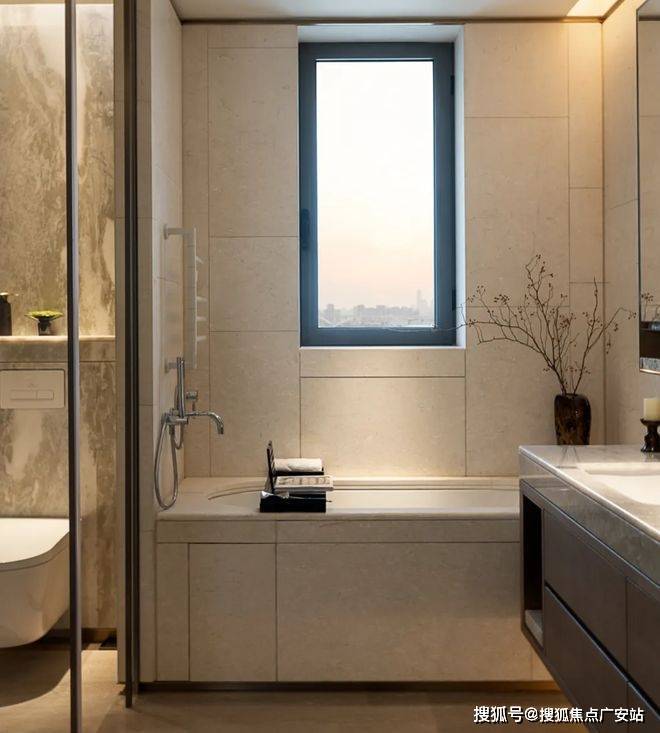 作为高端材质代表,岩板被广泛应用于电视机背景墙、客餐厅地面,及厨房、卫生间的墙面与地面,甚至卫生间飘窗也采用岩板铺设。