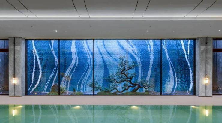 一面美轮美奂的曲面瀑布,天青色墙面诉说着传承百年的历史底蕴。