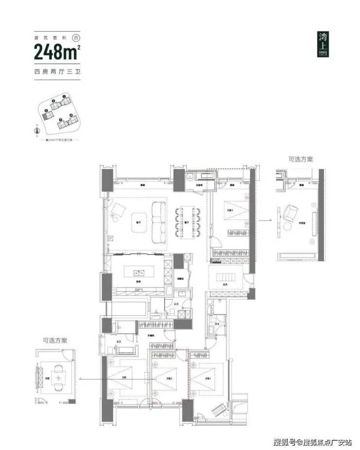 产品:精装大平层(建面约 138–248㎡,含 380–460㎡顶复摘星户型)