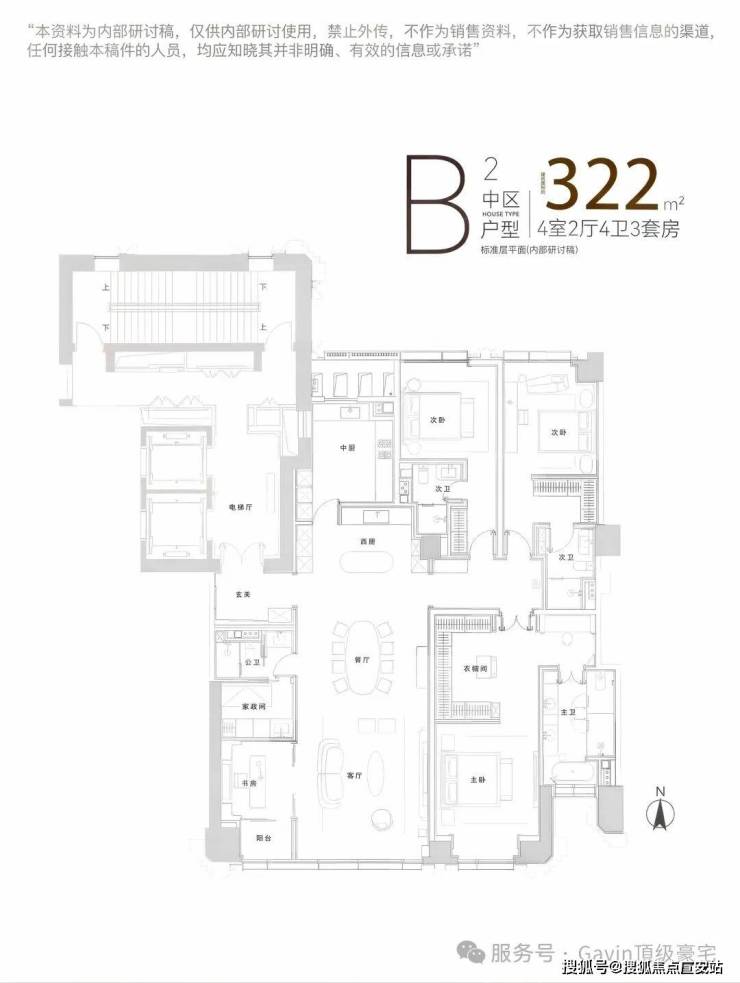 ·B·建面约317㎡-318㎡-322㎡,奢阔四室户型,LDKB+X一体通透化设计,公共空间阔绰通透,每间卧室都是套房设计,书房可灵活改造为茶室、健身房,满足多元场景.
