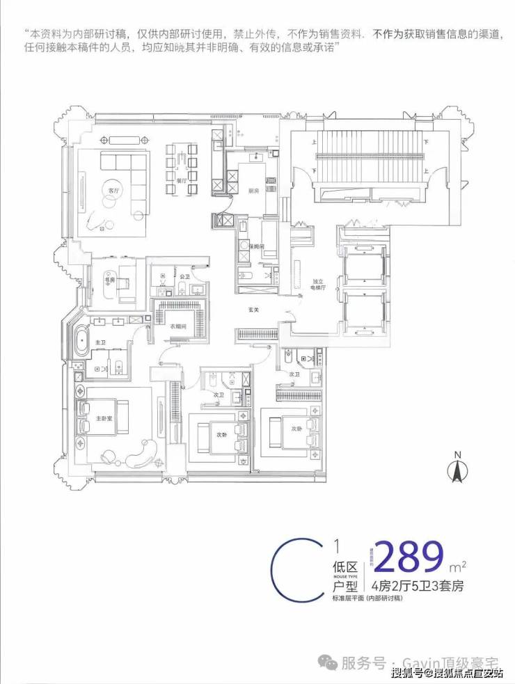 ·A·建面约276㎡-289㎡-302㎡:4室户型,三开间朝南,60㎡奢阔客厅连通全景落地窗,推窗即揽梧桐盛景,全套房设计保障私密生活.