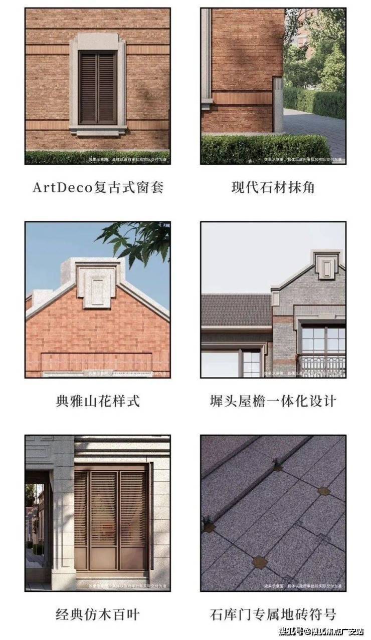 深入看细节,你会发现项目高颜值的6大新复古元素。包括Artdeco复古式窗套、现代石材抹角、典雅山花样式、墀头屋檐一体化设计、经典仿木百叶、石库门专属地砖符号等,用先锋表达回应在地文化。