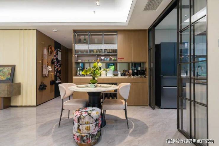 从进门开始,到餐厅旁边的日咖夜酒吧台,都被设计成了储物空间。