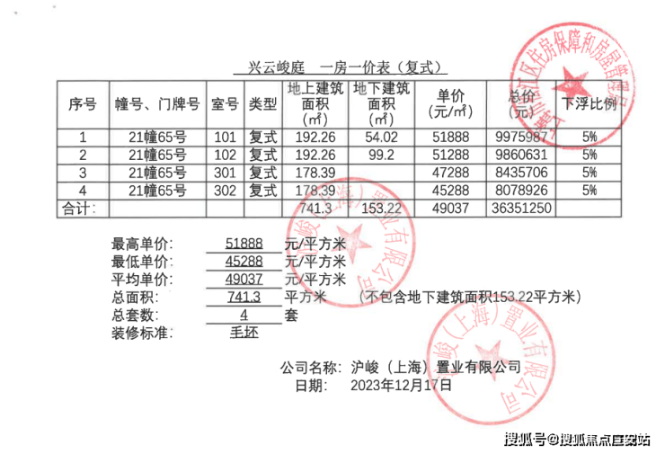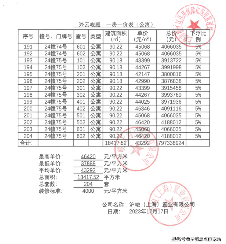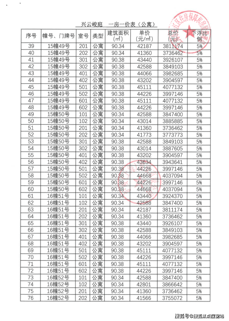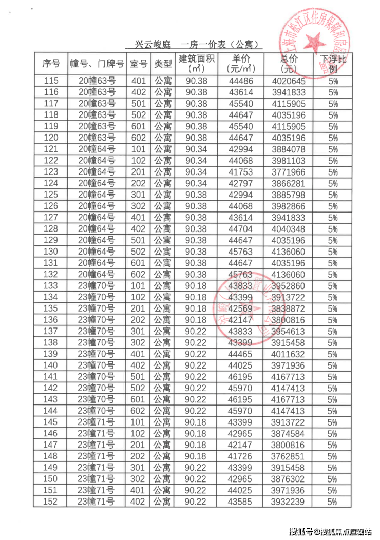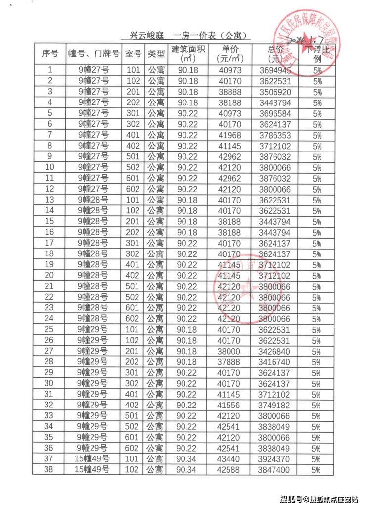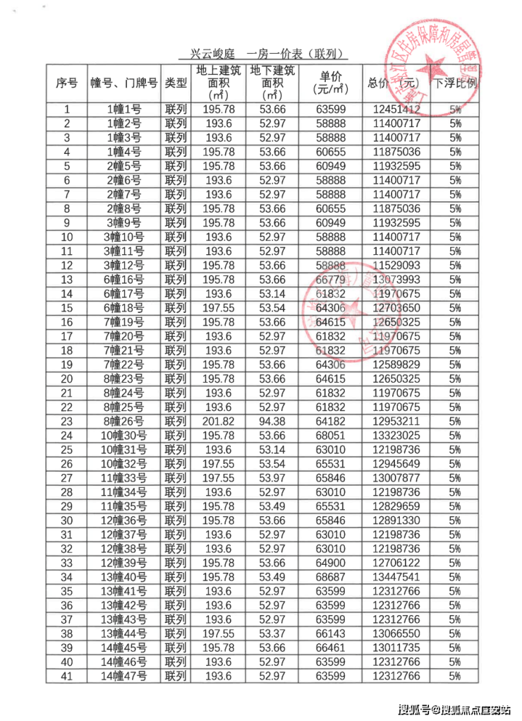 一房一价表: