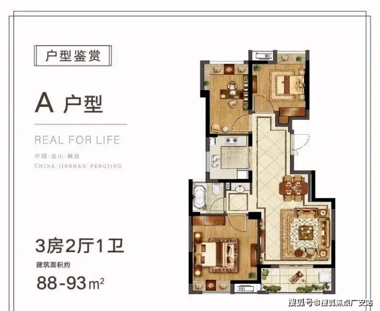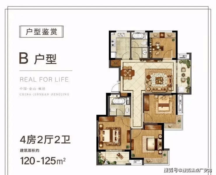长城逸府(金山住宅)建面:90-125㎡、均价21000元/㎡,精装现房、梯户比:一梯两户️、户型一面积90平米3/2/1️、户型二面积125平米4/2/2