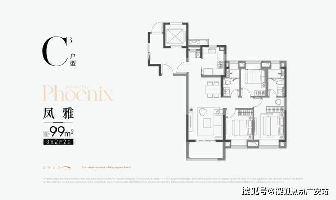 · 建面约99㎡户型则进阶3房2卫,适配对品质有需求的首置或首改客户!