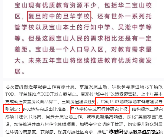 教育:陈伯吹实验幼儿园 / 小学、共康中小学、华师大宝山实验学校、在建九年一贯制学校