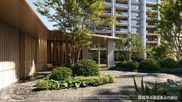 首先,项目带来了约4800㎡的对景式水院,并在院中融入了约1800㎡的公园会所,将会所嵌入公园之中!