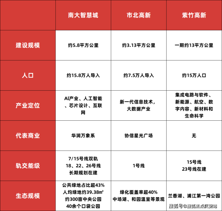 幸运的是,南大板块完全满足这个条件,我们通过对比紫竹高新和市北高新就能发现,南大智慧城早已完成了超越!
