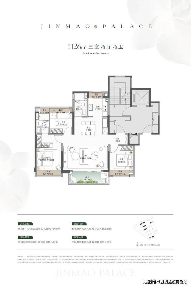 建面约126㎡3房:
