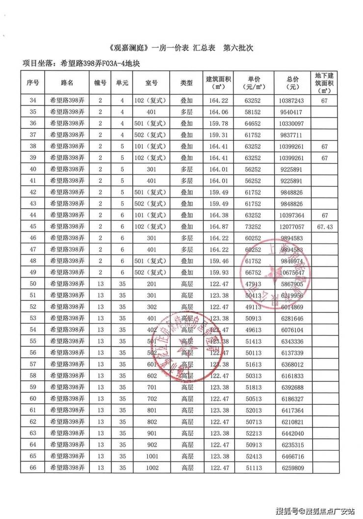 一房一价表如下: