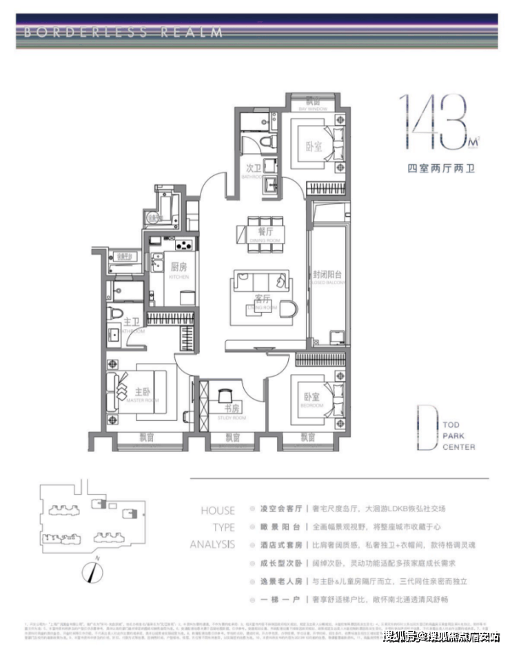 建面约143m²户型特点:超大画幅的岛厅,大洄游LDKB公区格局,IMAX级景观阳台,超奢观景视野,一梯一户尊享级梯户比,南北通透,尊崇感十足!