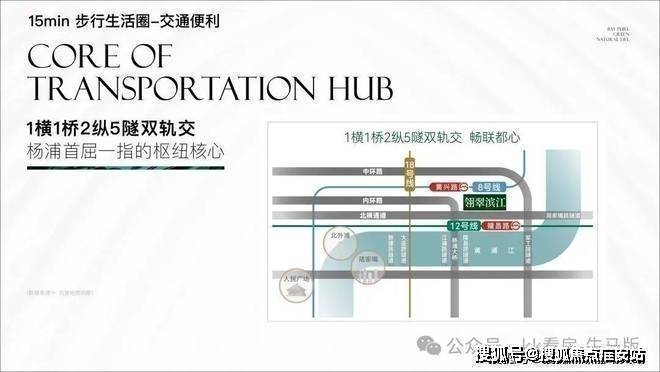 地铁:约900m8号线黄兴路站;约600m至12号线隆昌路站,5站陆家嘴,16条换乘通达全城