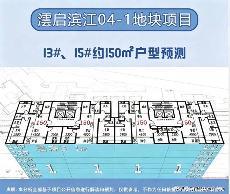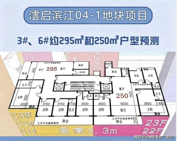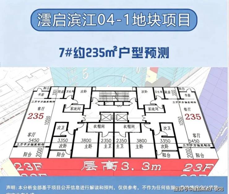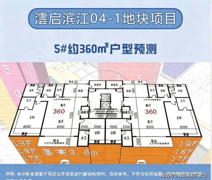 在户型分布上,新地块遵循景观资源最大化原则,将三栋住宅朝向东北偏转约45度,以最大化利用江景视野。面积方面,经过三万平方的预测统计,高层户型面积约150-360㎡,分别为150㎡、155㎡、190㎡、235㎡、250㎡、295㎡以及360㎡,层高约3.1-3.6米;具体信息以开发商最终公示为准。