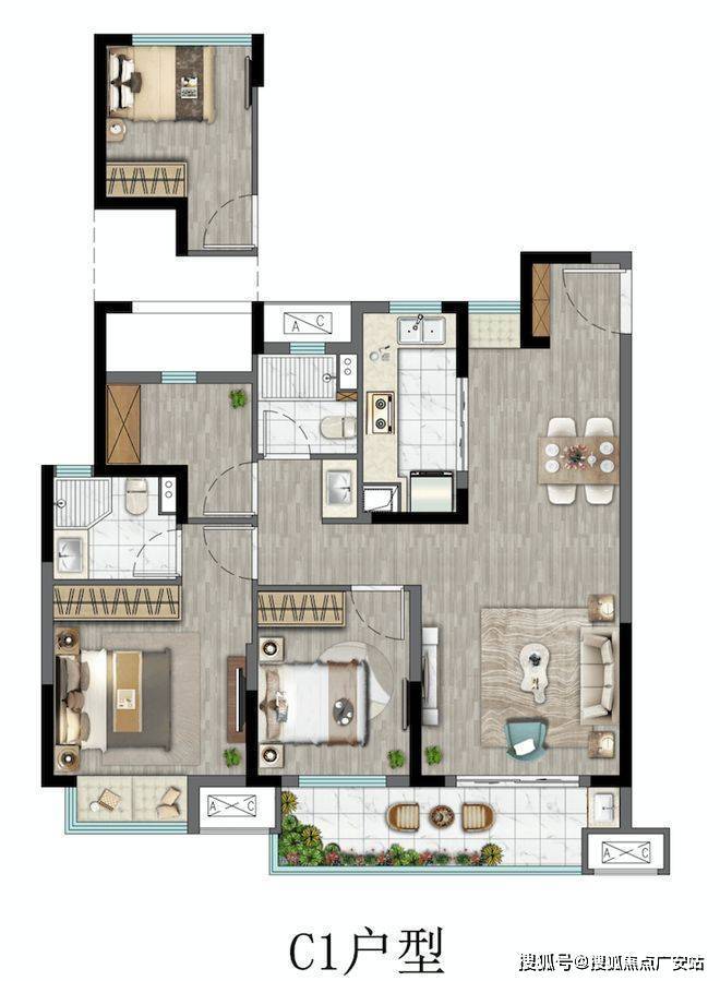 客厅、次卧外接阔尺宽景阳台,打造儿童乐园;