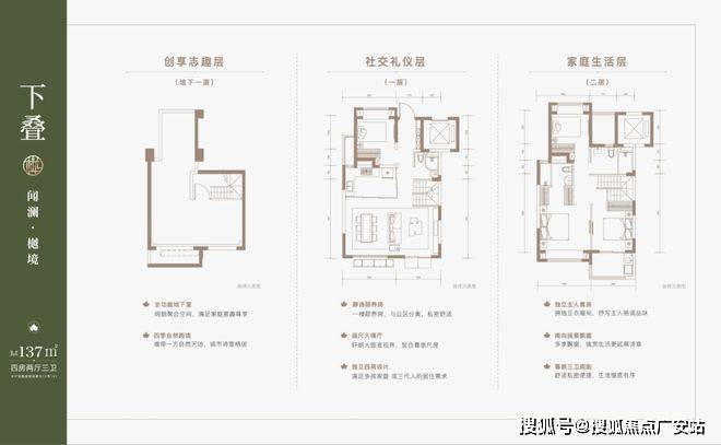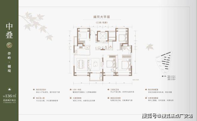 建面约137㎡下叠,四房两厅三卫全能格局,非常适合二娃家庭以及三代同堂。