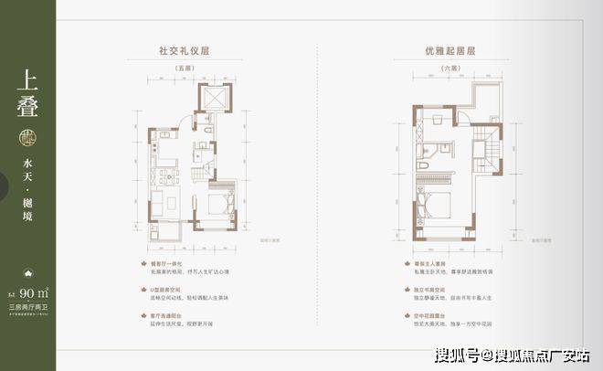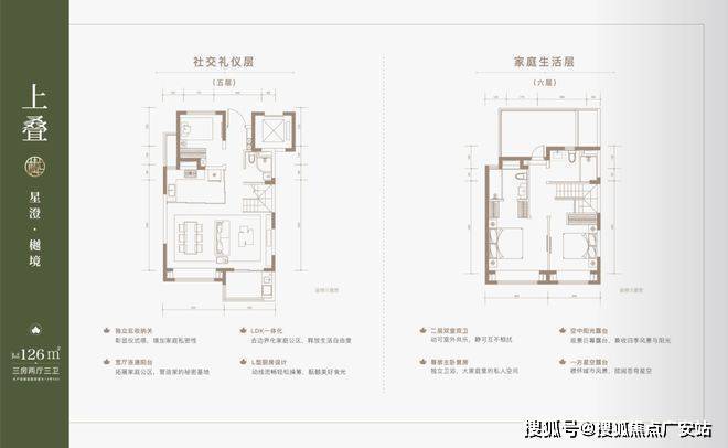 上叠产品都是带有空中花园露台,日常聚餐、烧烤、开party等娱乐活动有大展拳脚的空间,同时客餐厅一体化+U型厨房空间+尊崇主卧套房,户型设计合理,格局方正。
