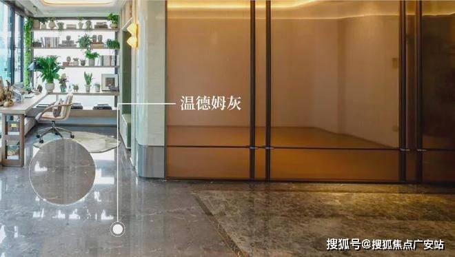 铺陈客厅的灰调石材,以“铜流金镶”工艺进行围合,两种不同灰度的天然奢石完美融合,细腻雅致的鱼肚灰、星河般璀璨的星耀灰,成为客厅一道不可多得的艺术风景。