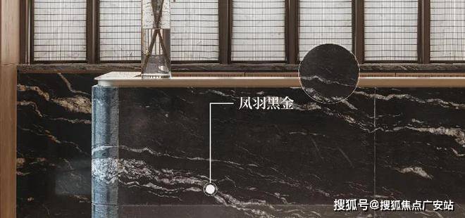 水吧台采用上海传奇豪宅汤臣一品同款——凤羽黑金,其名如画,其色如诗,黑色基底宛如深邃的夜空,金色的纹路似凤凰展翼,具有独一无二的奢华质感,带来无与伦比的视觉震撼。