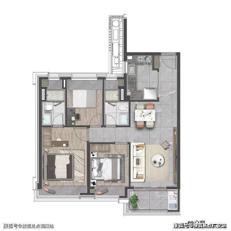 该户型贴合当代人居生活习惯,既适合三口之家小太阳家庭,也可以是三代同堂,每个人都能拥有独立空间。